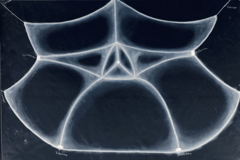 This aggressiveness with which the organic form grows into rigid structures in order to finally impose itself, is its right: the right of poetry, like a concrete necessity of architecture, of the city, of everything. It is fragile poetry, which nevertheless never lets go of realism (5 columns, 7 anchoring places, 3 bedrooms). Finally, it balances and harmonizes that which is unilaterally opposite. In the translation of original language to the language of design, the organic is converted into content and it comes through intact. At the same time the organic form is converted gradually and literally into organic structure.