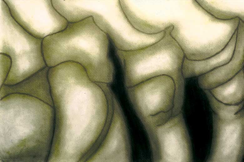 To think of scale, to introduce a change of vision which modifies the scale in an analytical drawing is immediately real in this work, that is not to say “realist”. And the work grows in size, with an explosive strength, going from sculpture to architecture and architecture to mountain ranges. The crab converts itself into a canopy design, the canopy into houses, the houses into housing complexes. The organic form pushes from inside, it grows, invades and takes over space. The models invade the space of this exhibition: they are representations of something, which is much bigger in reality.