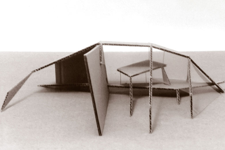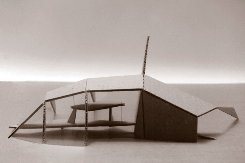 This aggressiveness with which the organic form grows into rigid structures in order to finally impose itself, is its right: the right of poetry, like a concrete necessity of architecture, of the city, of everything. It is fragile poetry, which nevertheless never lets go of realism (5 columns, 7 anchoring places, 3 bedrooms). Finally, it balances and harmonizes that which is unilaterally opposite. In the translation of original language to the language of design, the organic is converted into content and it comes through intact. At the same time the organic form is converted gradually and literally into organic structure.